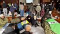 事務局寒い中でしたが40名ほどの参加者があり、集会所の部屋を2部屋に分けて防災講演とAED訓練を行いました。