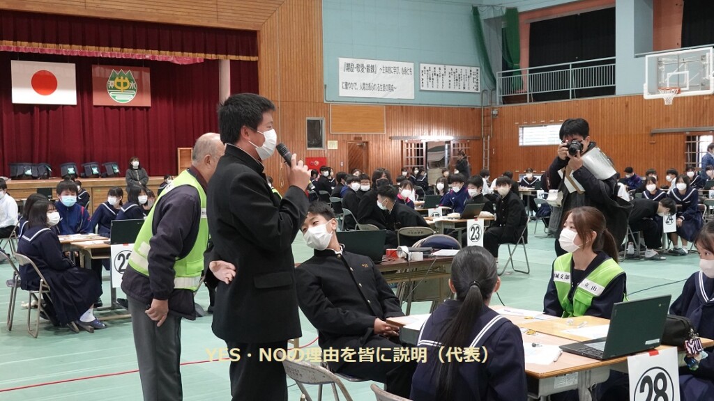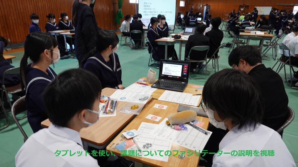 ~『クロスロードゲーム』で知る災害への向き合い方~をテーマに、1,3年生の225名を対象に開催しました。