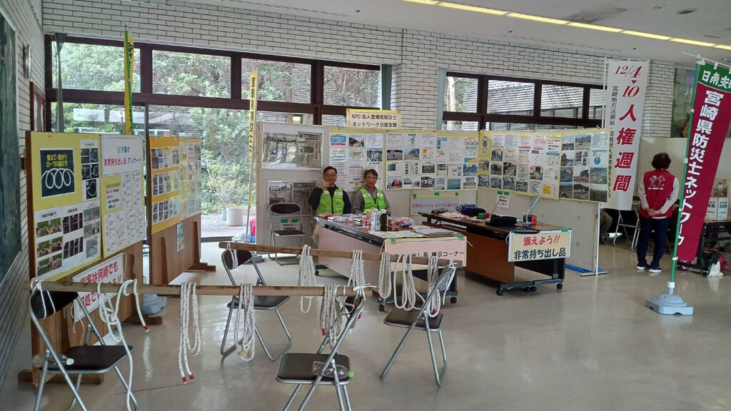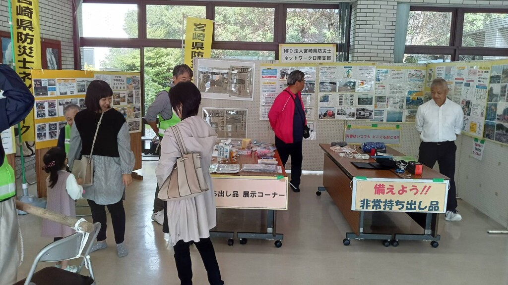 ①防災・災害展示コーナー②我が家の非常持ち出し品アンケート③非常持ち出し品の展示