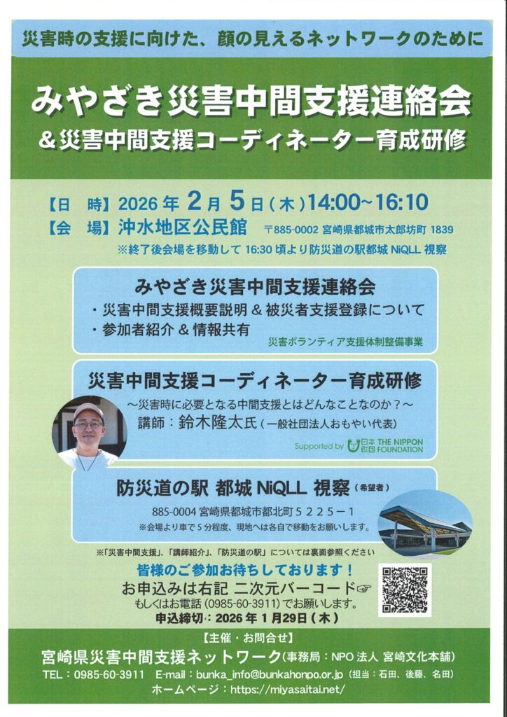 みやざき災害中間支援連絡会&災害中間支援コーディネーター育成研修(高鍋・都城開催)