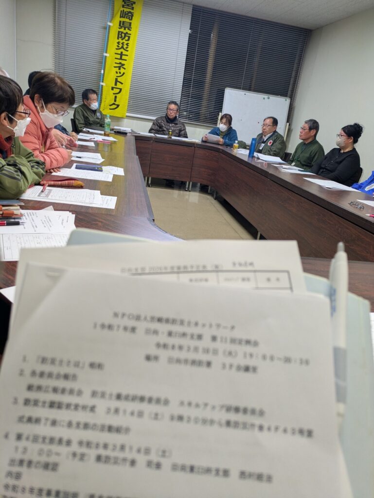 事務局3月度の定例会を、日向消防署の小会議室で行いました。