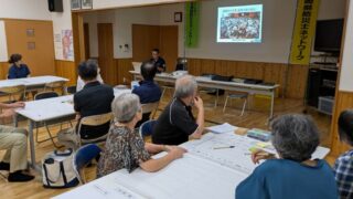 事務局 日向・東臼杵支部 曽根区公民館で出前講座開催 日向市日知屋の曽根区公民館で、避難所運営ゲーム(HUG)を行いました。区長さんはじめ、たくさんの方々が参加してくださり、「実際の災害の時に役に立つようにせんといかん」と真剣に取り組んでくださいました。✴︎ 2025.09.26 事務局日向・東臼杵支部