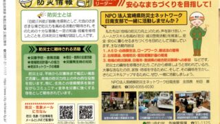 日南支部 日南支部:9月15日発行の日南市報「好きです にちなん」裏表紙に日南支部の紹介が掲載されました。 令和7年9月15日発行 日南市報「好きです にちなん」に日南市危機管理課が防災情報として日南支部活動の紹介がありました。皆様、防災士同士に声を掛け合い、スキルを高め、繋がりを深めて活動して参りましょう。EPSON MFP image 2025.09.25 日南支部